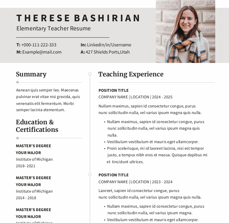 Academic resume example for educators and researchers.